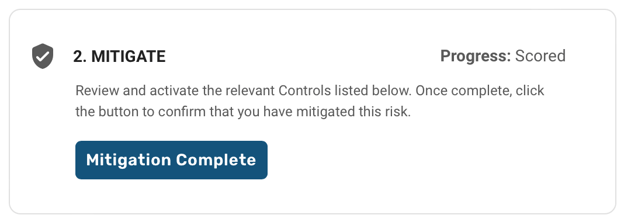 Mitigate identified risks by linking controls from one or more frameworks. You’ll be able to review and activate the relevant controls, then click a button to confirm that you have mitigated the risk.